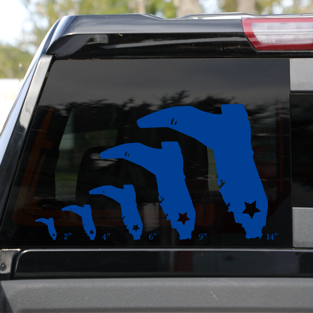 Each Florida Cracker Boot Decal comes custom die cut with the star knocked out and ready to use. Just pick your spot, clean the surface, and apply the decal in the desired position. Welcome to #Bootnation