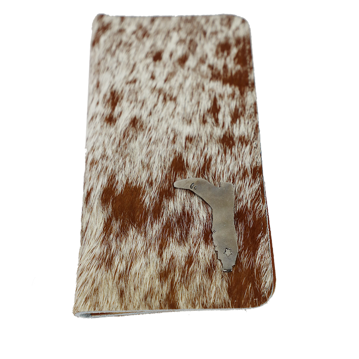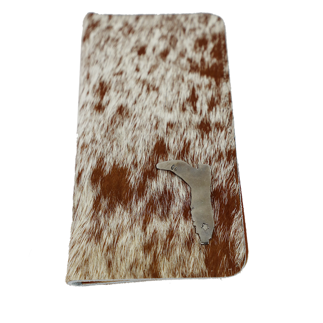 Genuine cowhide bifold wallet with Florida Cracker boot logo.