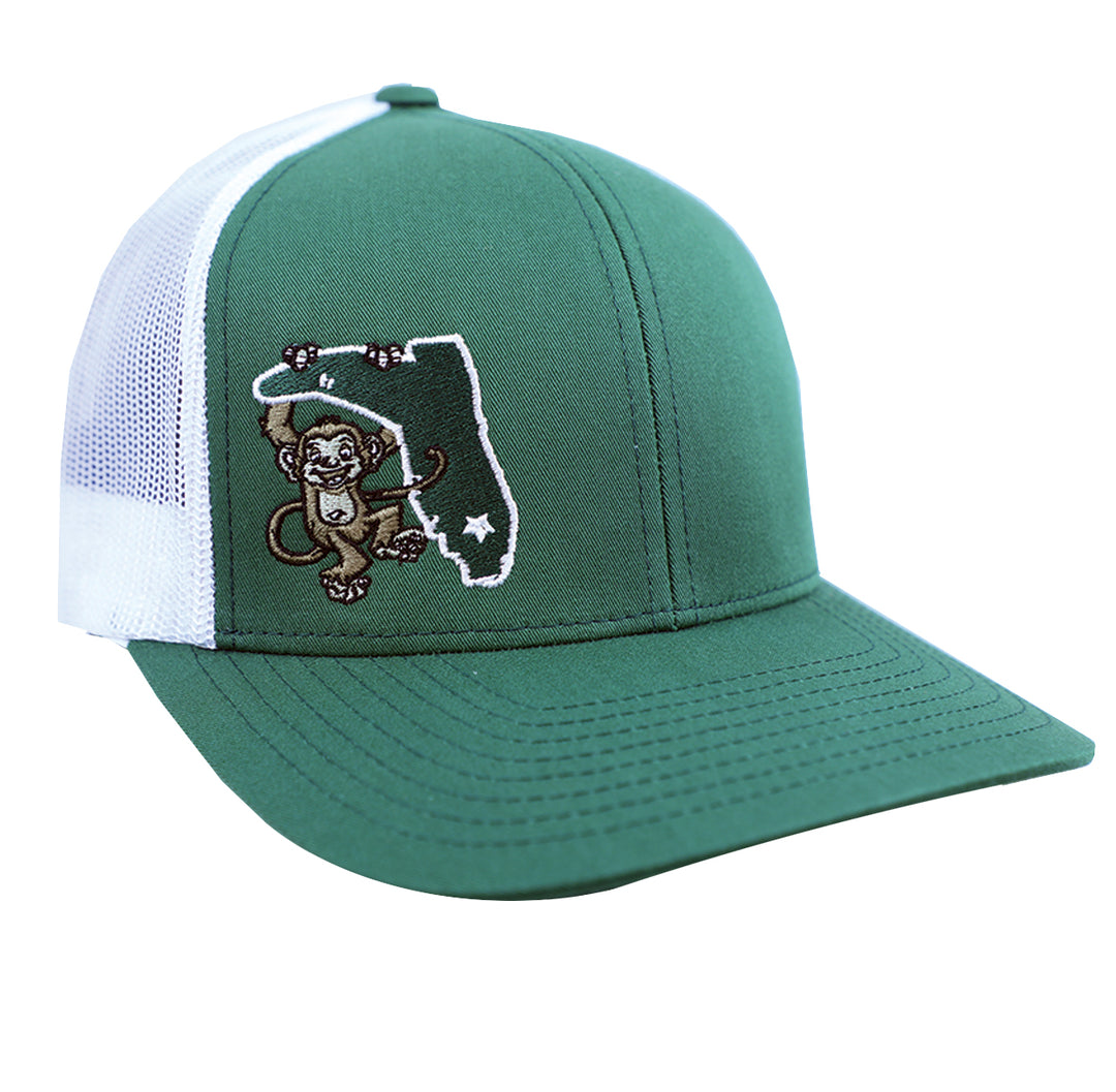 MONKEY BAR OFF CENTER DARK GREEN/WHITE MESH TRUCKER SNAPBACK