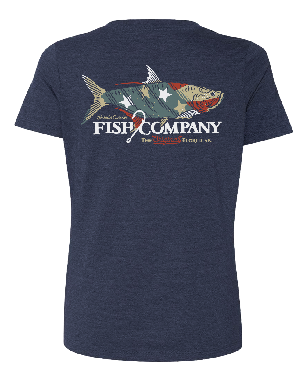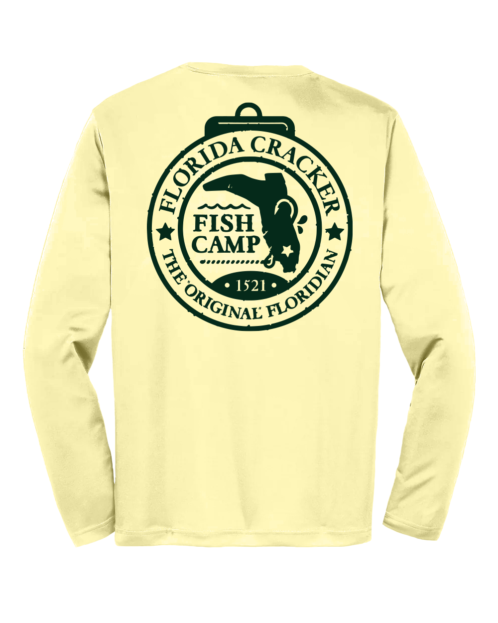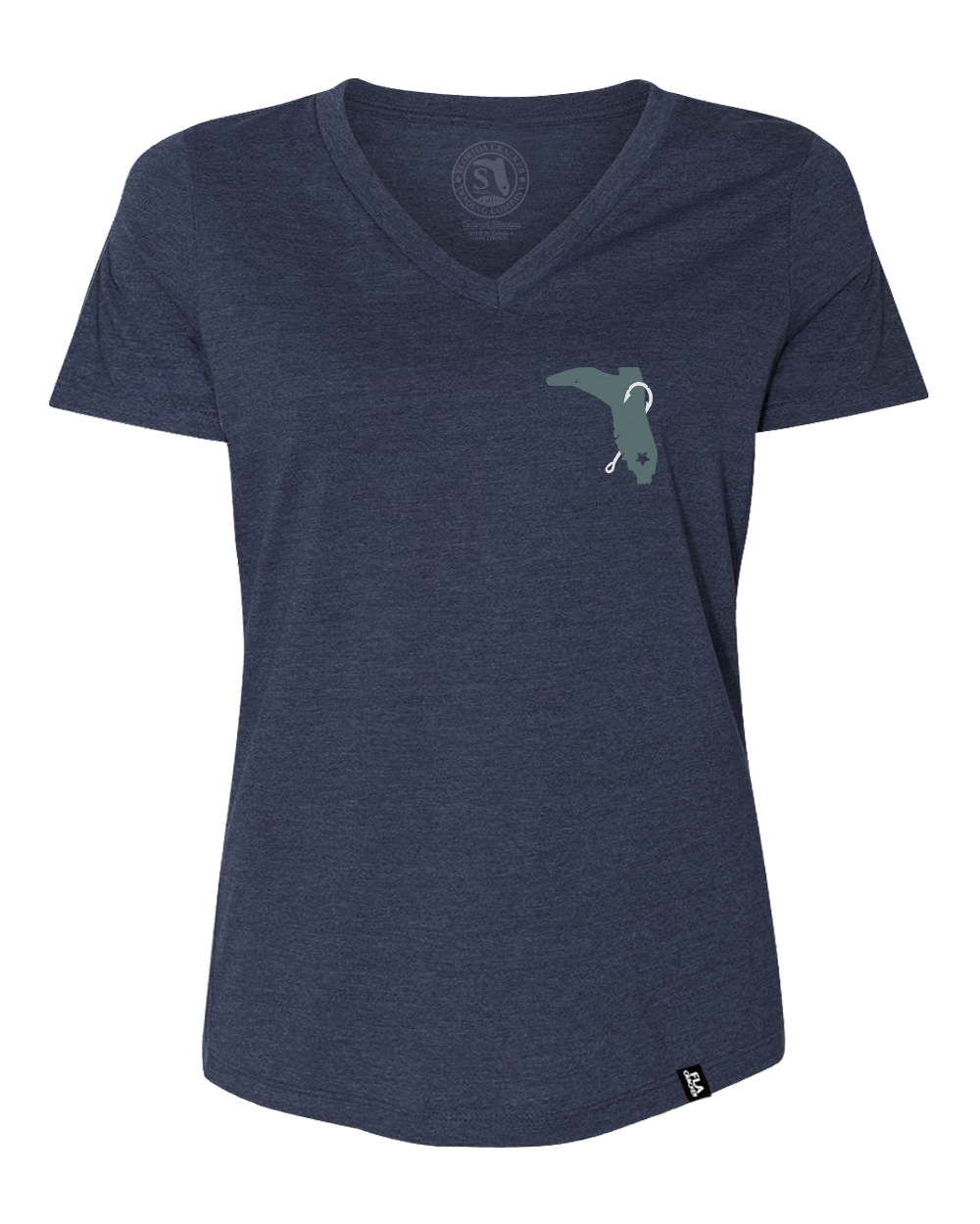 FISH CAMP BADGE YELLOW LADIES V-NECK MICRO