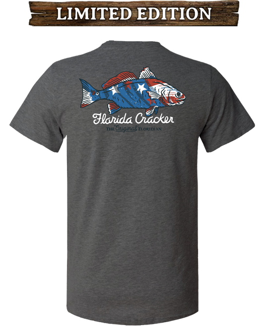 Show your American pride with the LIMITED BETSY REDFISH S/S in Deep Heather. This short-sleeve shirt blends classic Southern style with a bold redfish design, perfect for those who love the water and their country. Comfortable and durable, it’s ideal for fishing trips, casual outings, or simply celebrating your roots with a touch of Florida flair.