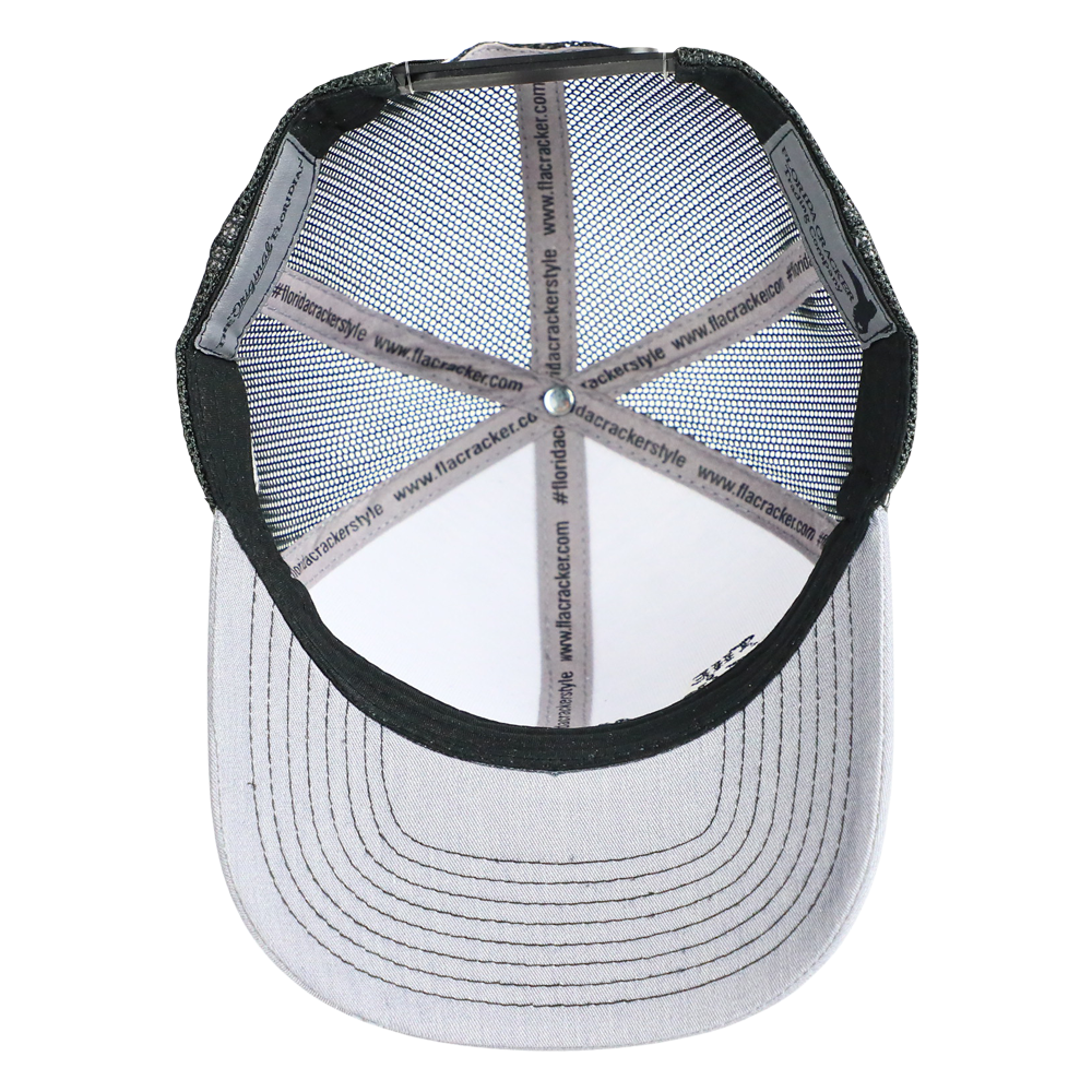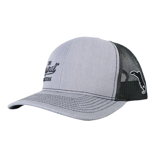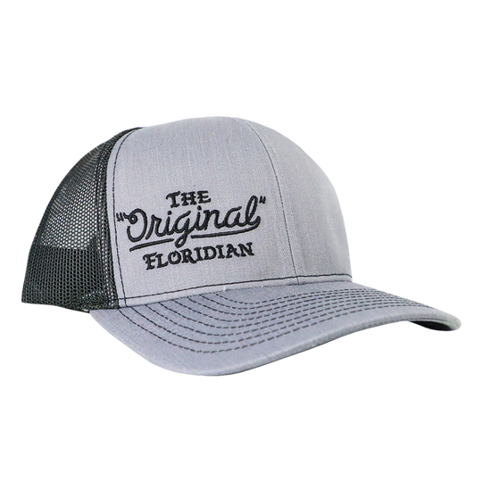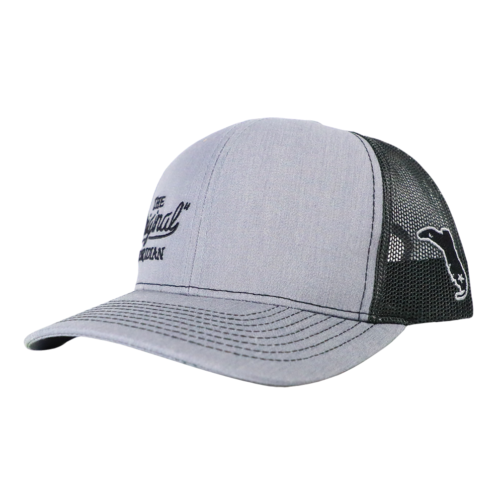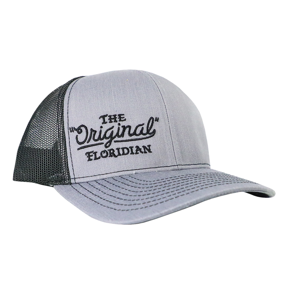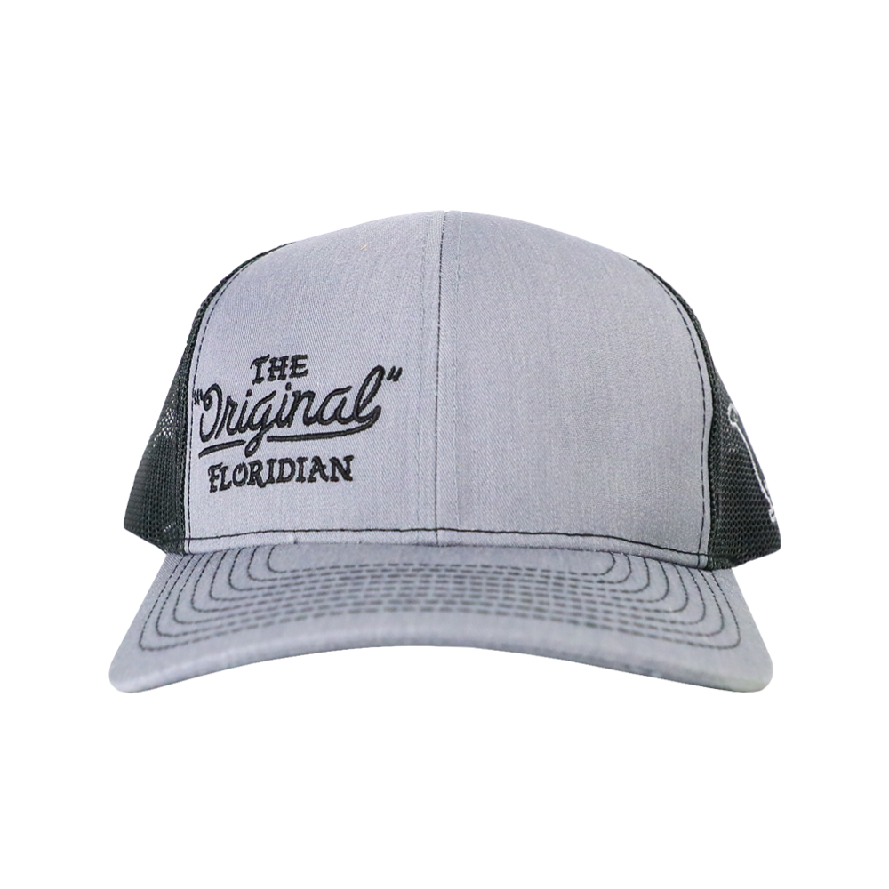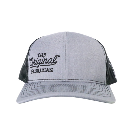 THE ORIGINAL FLORIDIAN HEATHER GREY ON BLACK TRUCKER HAT