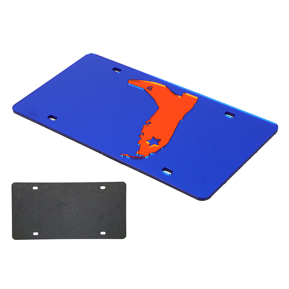 BLUE/ORANGE MIRRORED LICENSE PLATE