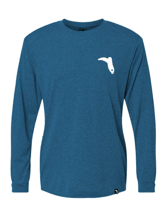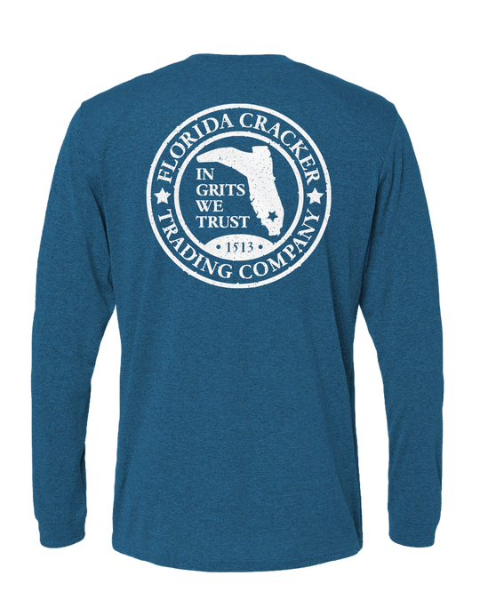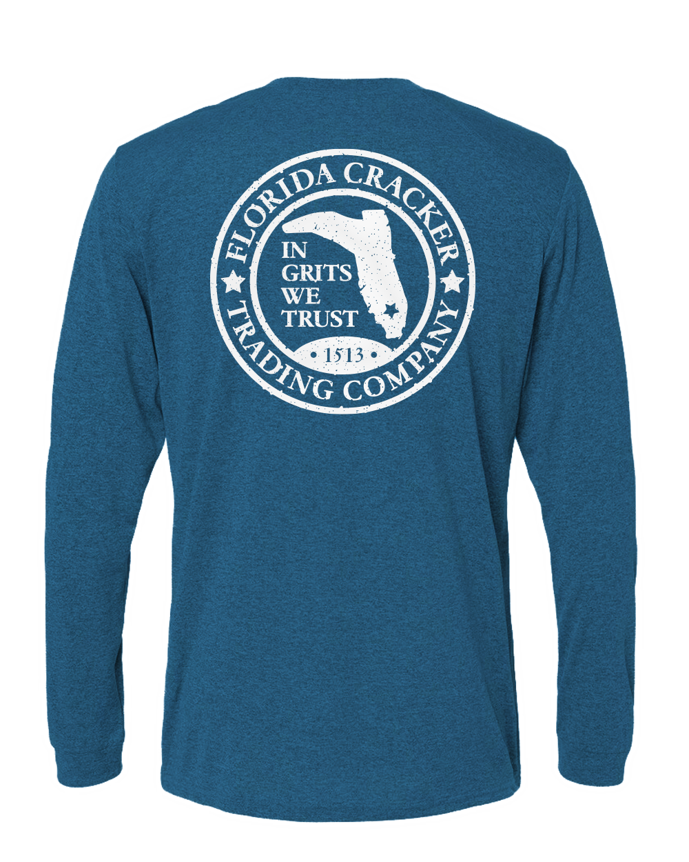Florida Cracker Original Badge Logo on a Long Sleeved Heather Slate