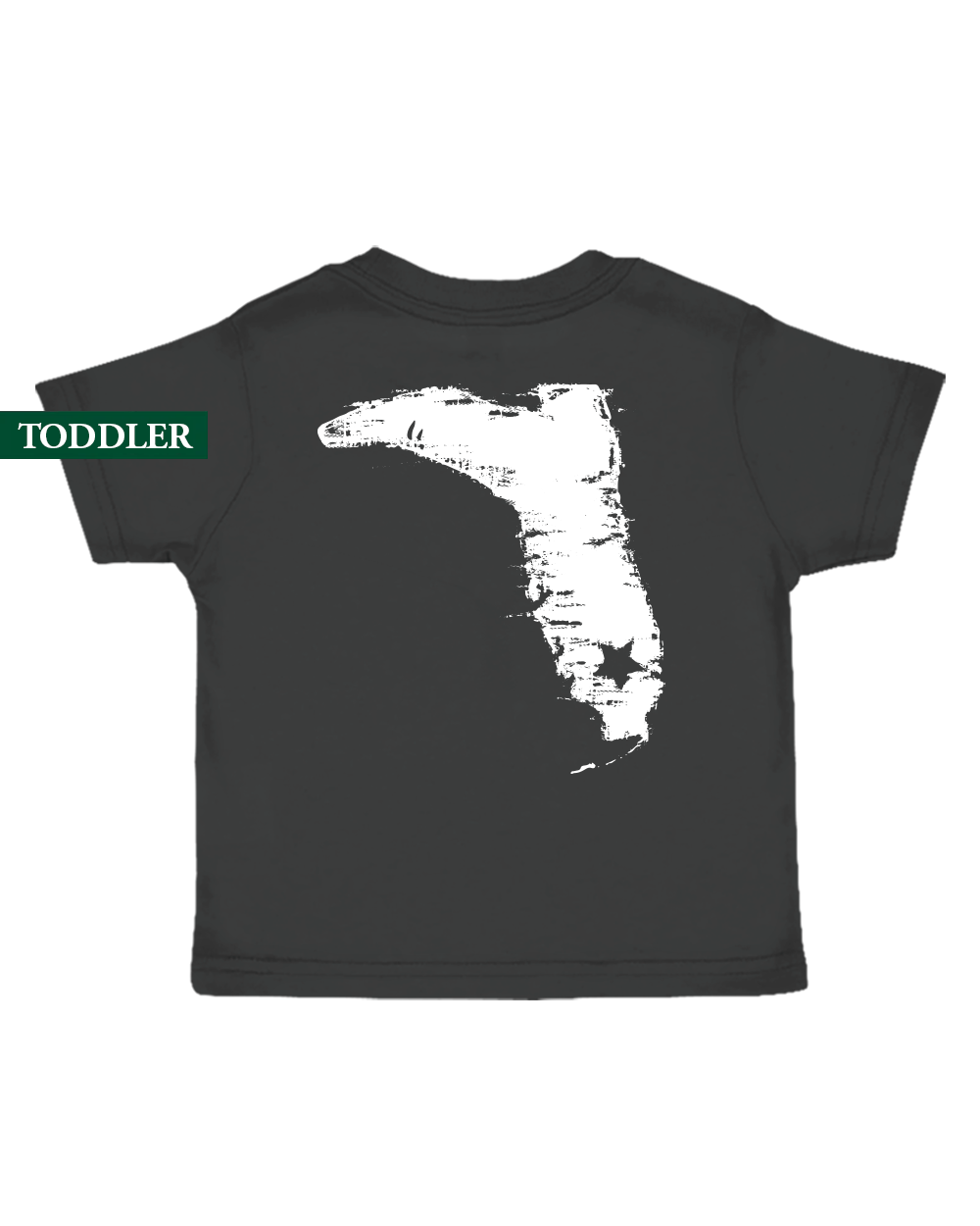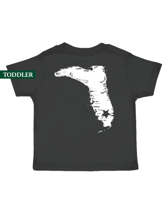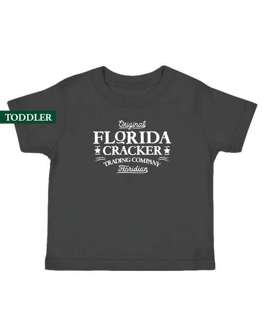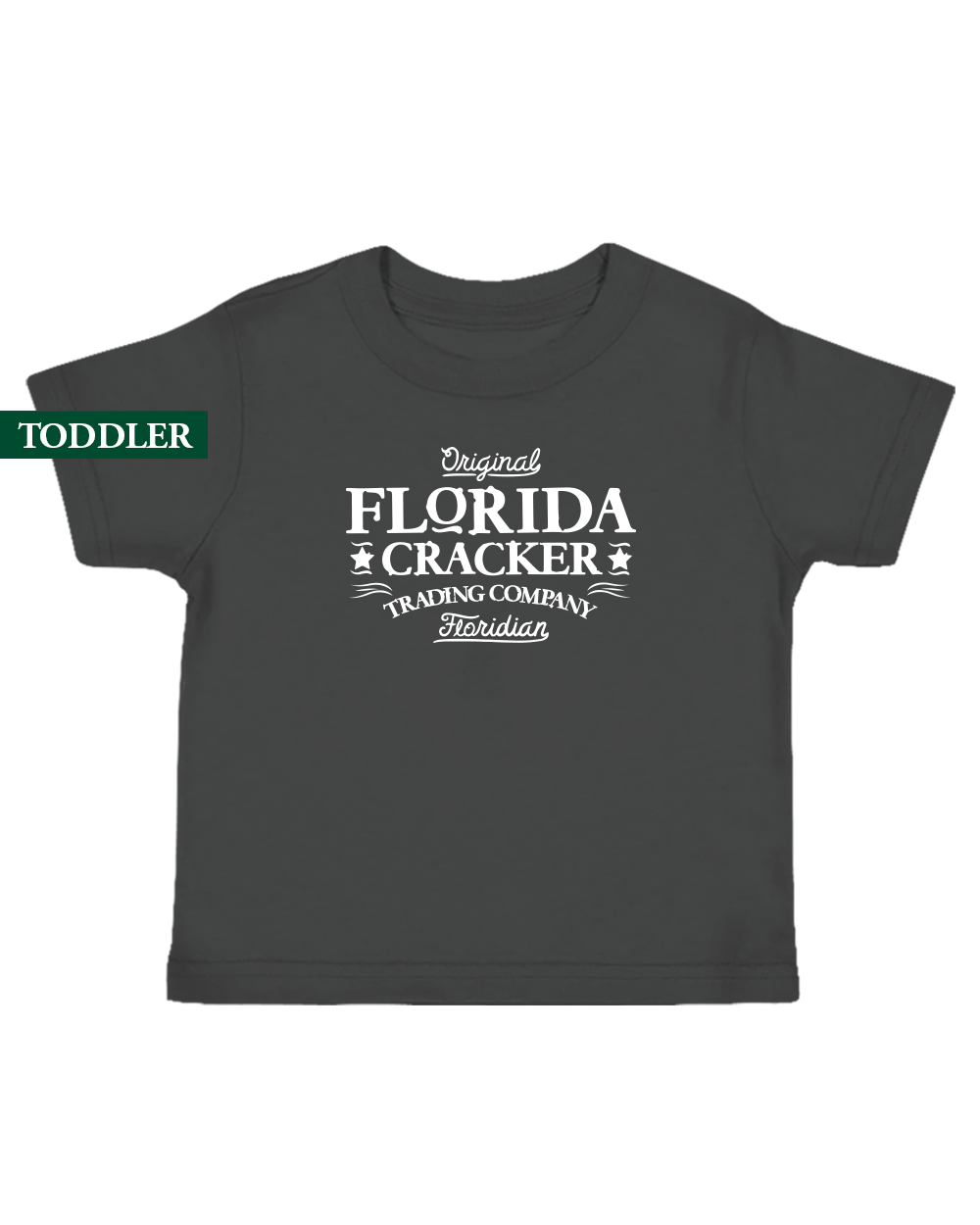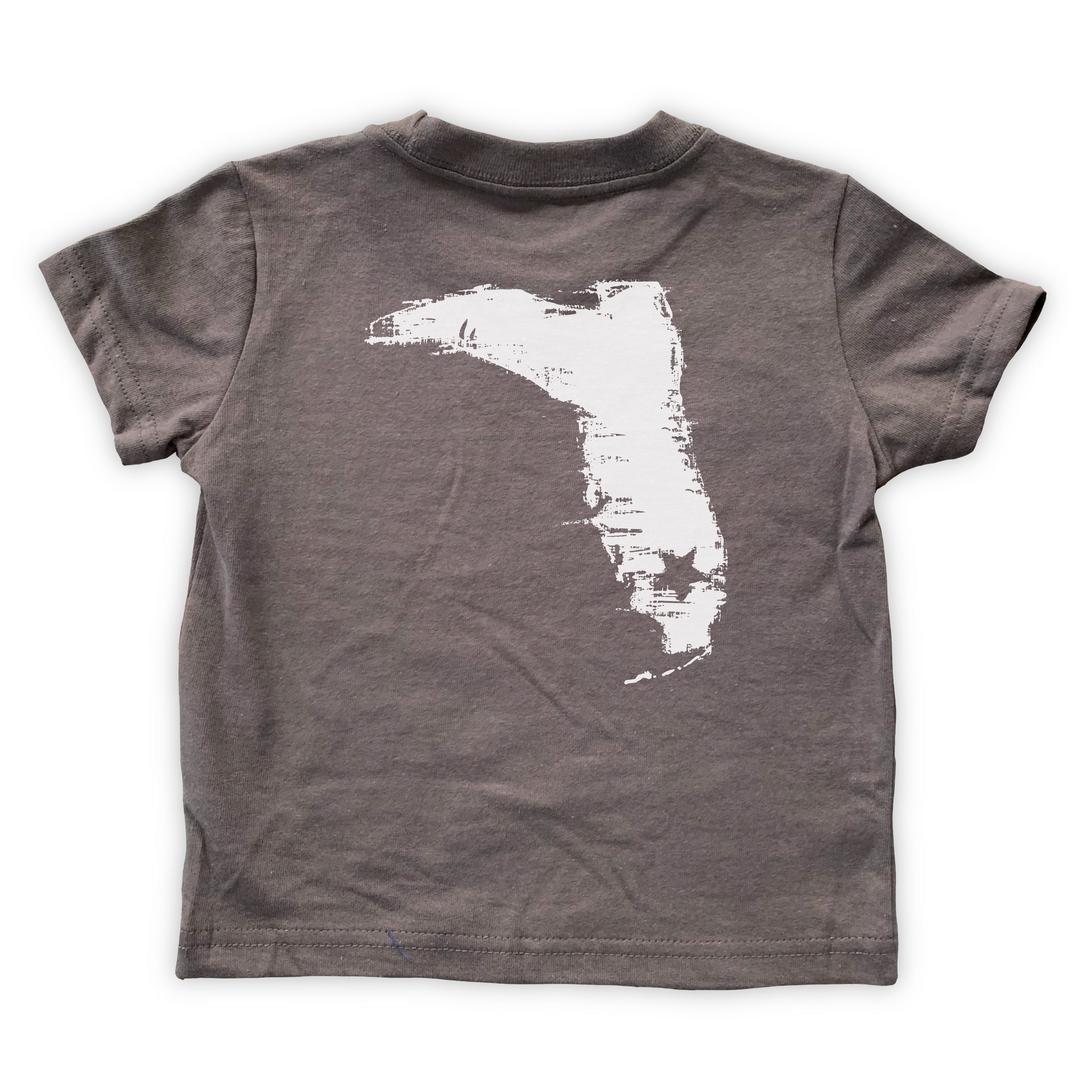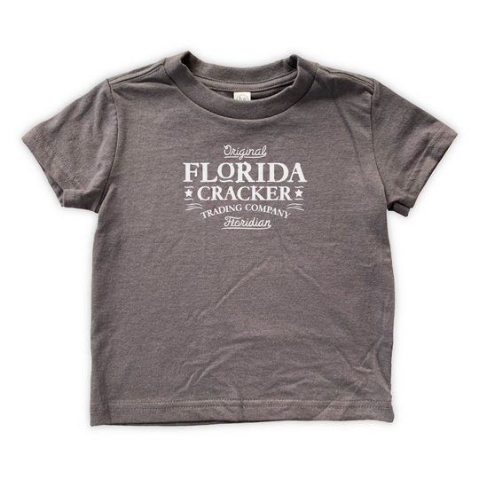 Teach em' Florida Cracker Style Young! Our Heather Charcoal shirt with a classic distressed logo on the back!
