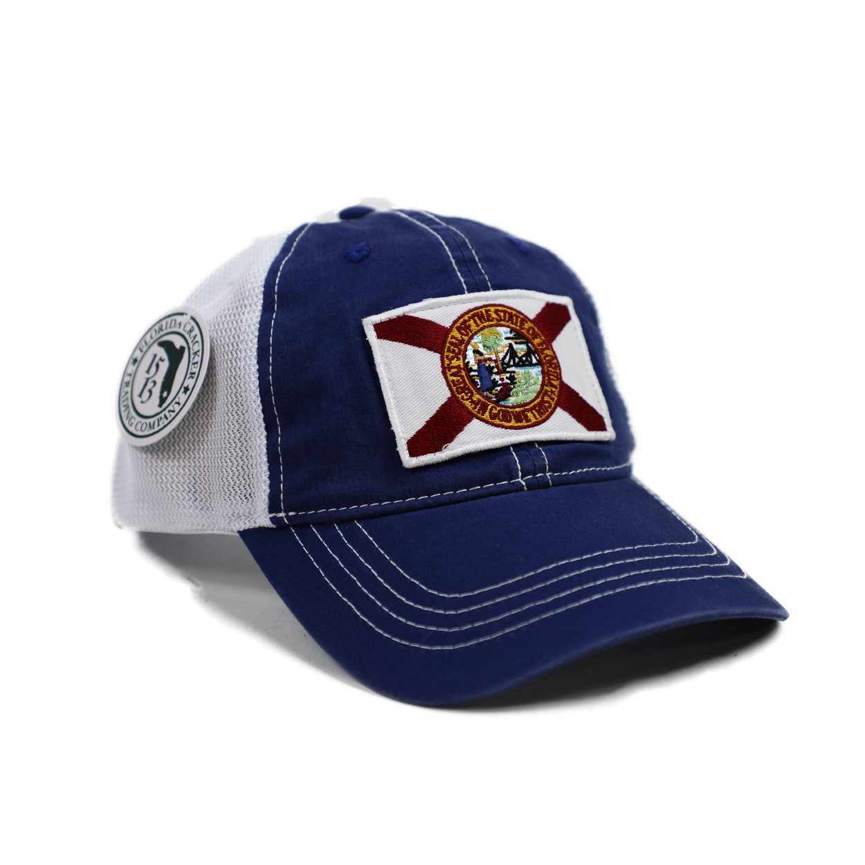 STATE FLAG PATCH ROYAL /WHITE MESH TRUCKER HAT